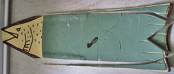 joten seuravan laudan tein sitten testimielessä leveämmäksi.. Ei hyvä, omaan käyttötarkoitukseen. Tein kakkoslaudan perän 27,5cm leveänä ja kalan pyrstöllä.