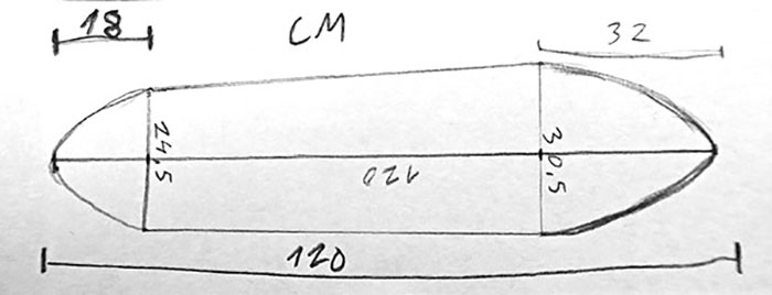 Tässä vaiheessa kannattaa olla visio tulevan laudan muodosta. Muotoja voi testailla esim. leikkelemällä 10 kertaa pienemmässä koossa keskeltä