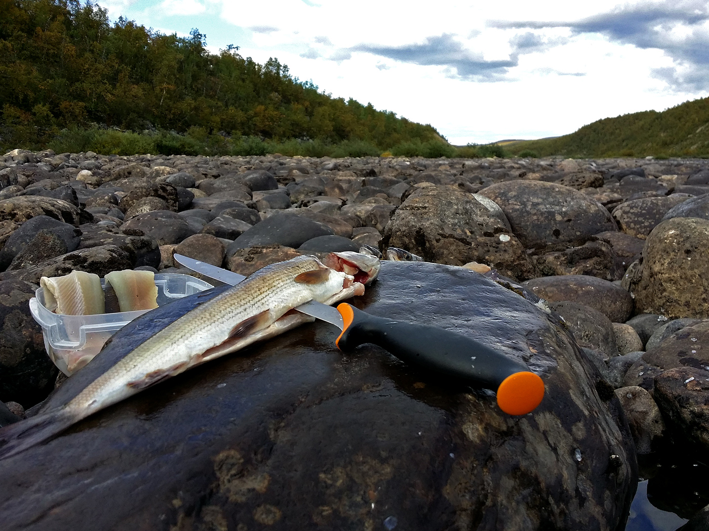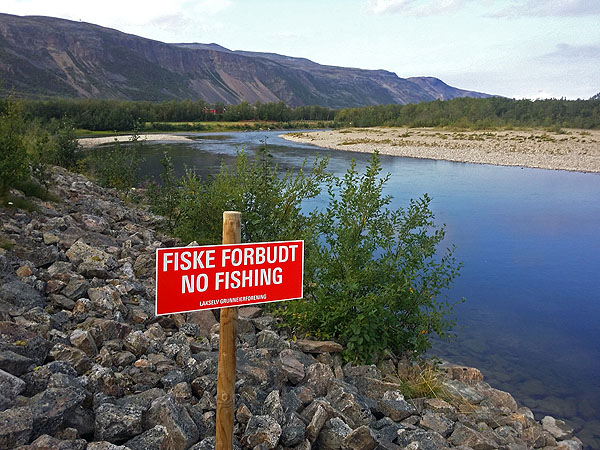 Matkalla Suomeen pikainen mutka Lakselville jossa totesin kalastuksen olleen kielletty.